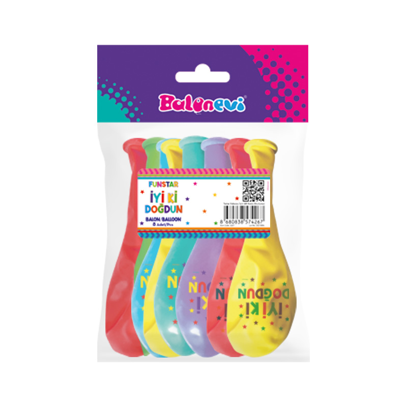 4+0 Funstar İyi Ki Doğdun Baskılı 12” Pastel Balon 8’li