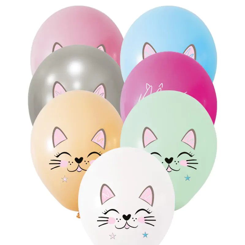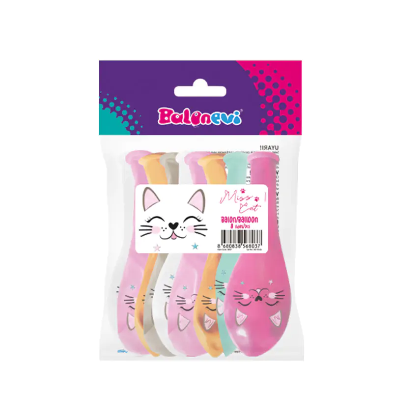 4+1 Miss Cat Baskılı 12” Pastel Balon 8’li