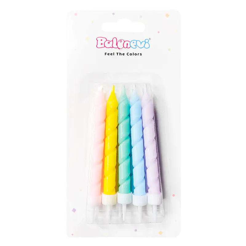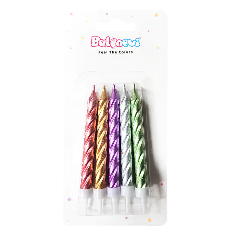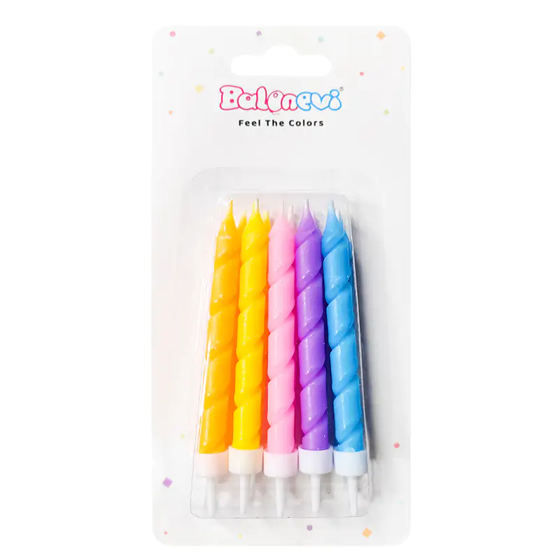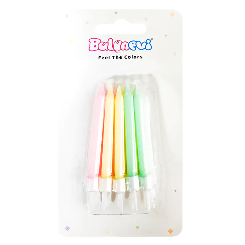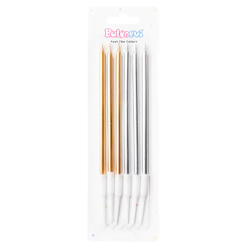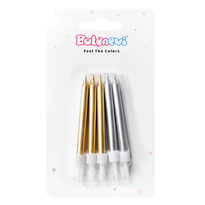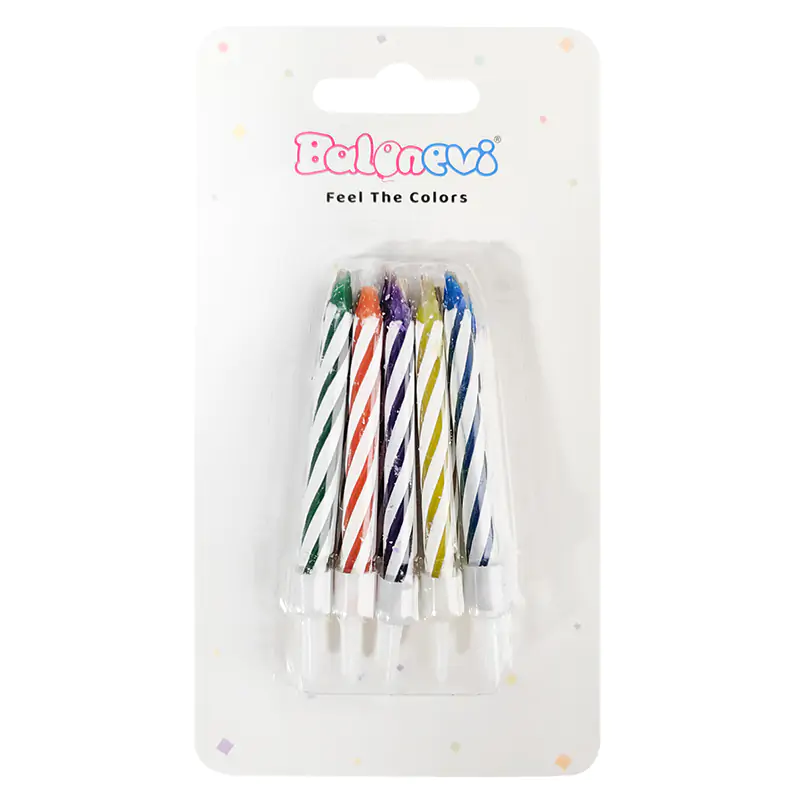 Gold Şeritli Makaron Karışık Mum 10'lu