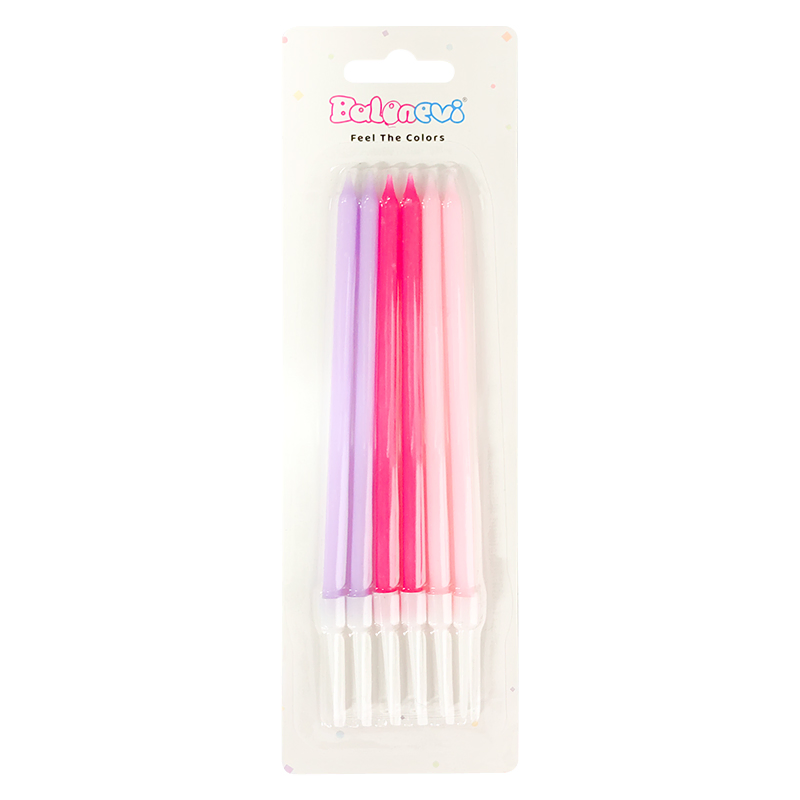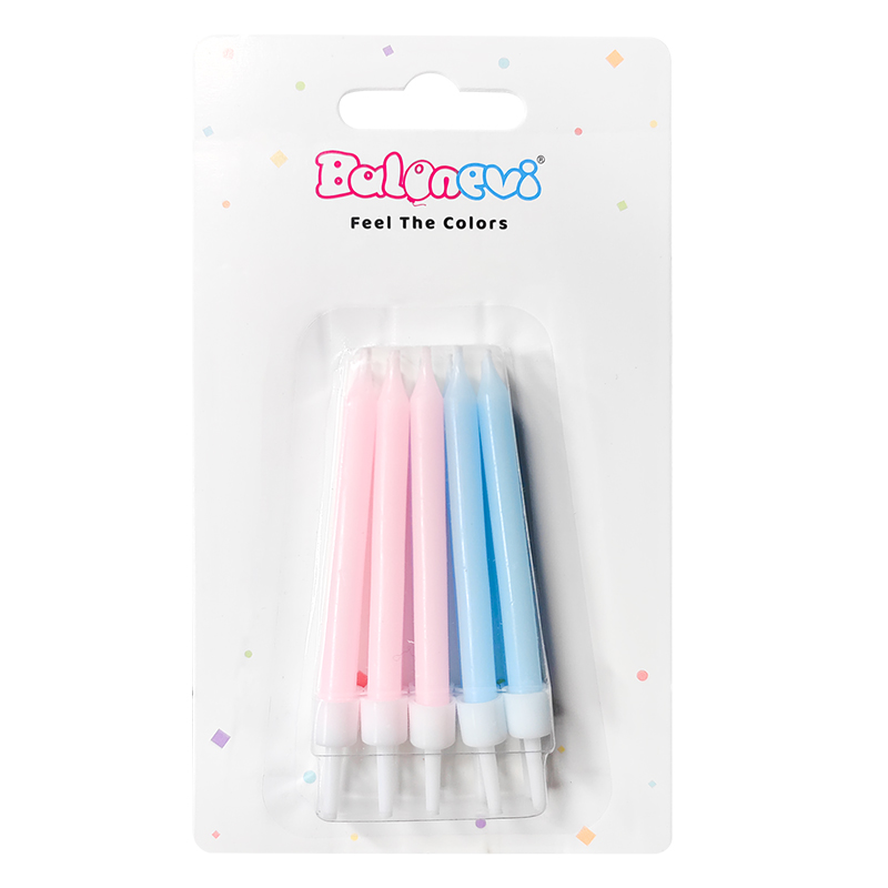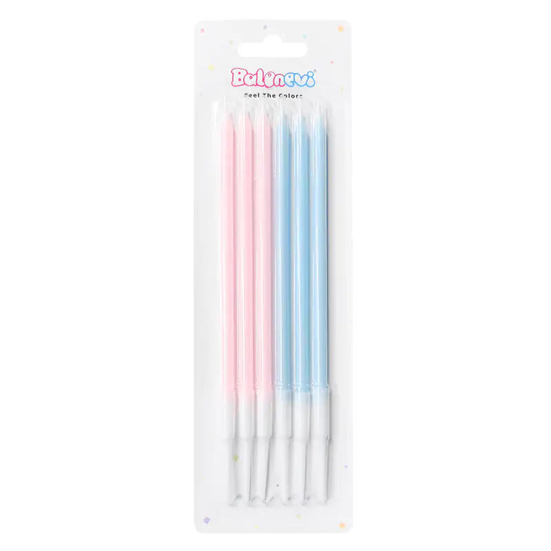 Makaron Pembe Makaron Mavi Uzun Mum 6'lı
