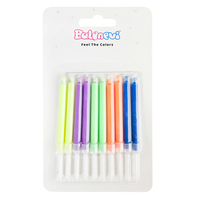 Makaron Pembe Makaron Mavi Uzun Mum 10'lu