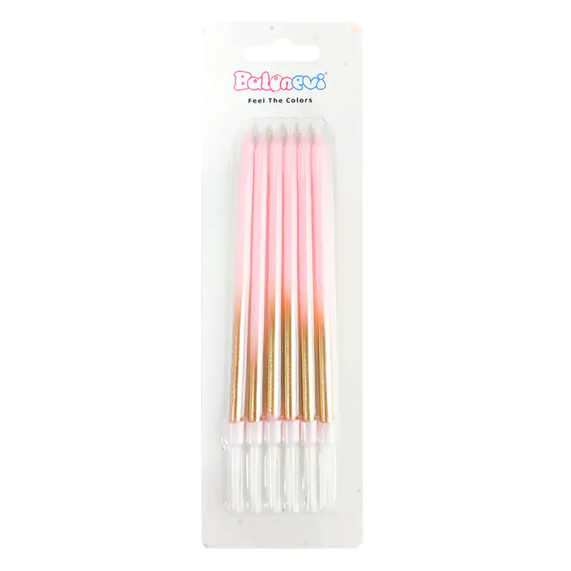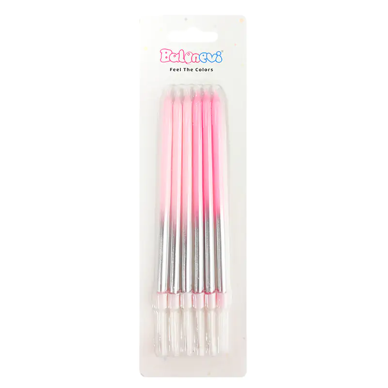 Beyaz Geçişli Açık Pembe Mum 6'lı