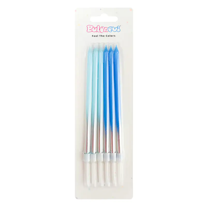 Beyaz Geçişli Açık Mavi Mum 6'lı